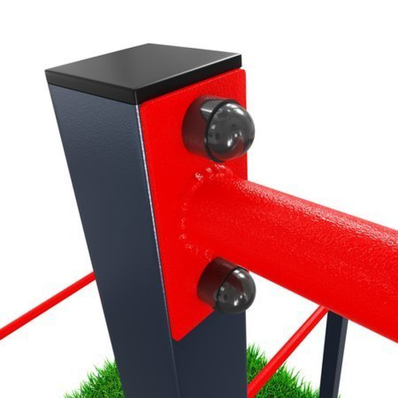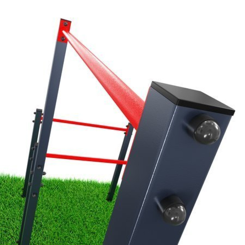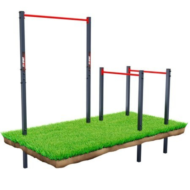 Турнік в поєднанні з поручнями є ідеальним обладнанням для занять на свіжому повітрі. З його допомогою можна проводити інтенсивні тренування бодибілдингу або гімнастики. Ви зміцните багато груп м'язів і покращите витривалість і гнучкість. Ідеально підходить для тренувань елементів гімнастики.