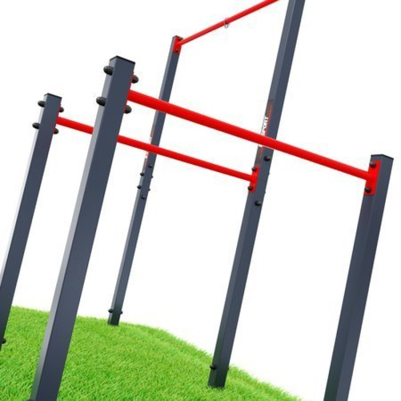 Штанга з додатковими поручнями - ідеальне обладнання для занять спортом на відкритому повітрі. З його допомогою можна проводити інтенсивні тренування бодибілдингу або гімнастики. Ви зміцните багато груп м'язів і покращите витривалість і гнучкість. Ідеально підходить для тренувань елементів гімнастики.