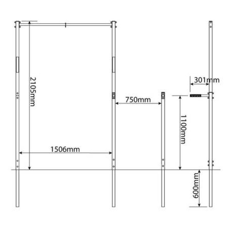 Безпека вправ вимагає, щоб частина кожного стовпа була розташована нижче рівня землі та забетонована. Для цього на 70 см було подовжено кожен вертикальний конструктивний елемент, який повинен бути під землею. Надземна і підземна частини кріпляться за допомогою шурупа, завдяки чому конструкцію можна демонтувати і зберігати, коли вона не використовується.