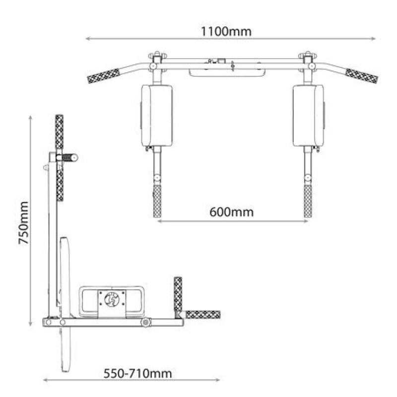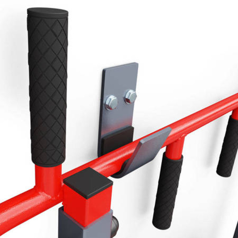 Обладнання, призначене для монтажу на стіні. Він має два способи кріплення, тож ви можете використовувати його як турнік для підтягування або як бруси. Безліч можливостей для професійного тренування м'язів спини і рук завдяки п'яти різним захопленням. Після повороту обладнання поручень дозволяє ретельно тренувати м’язи преса, рук і грудей.