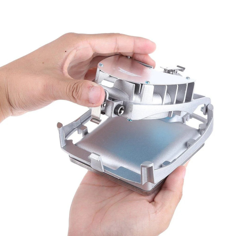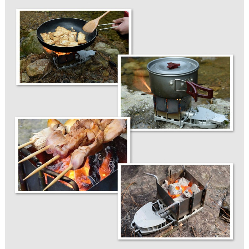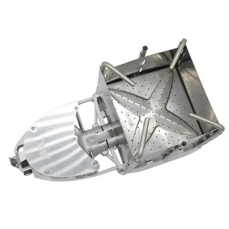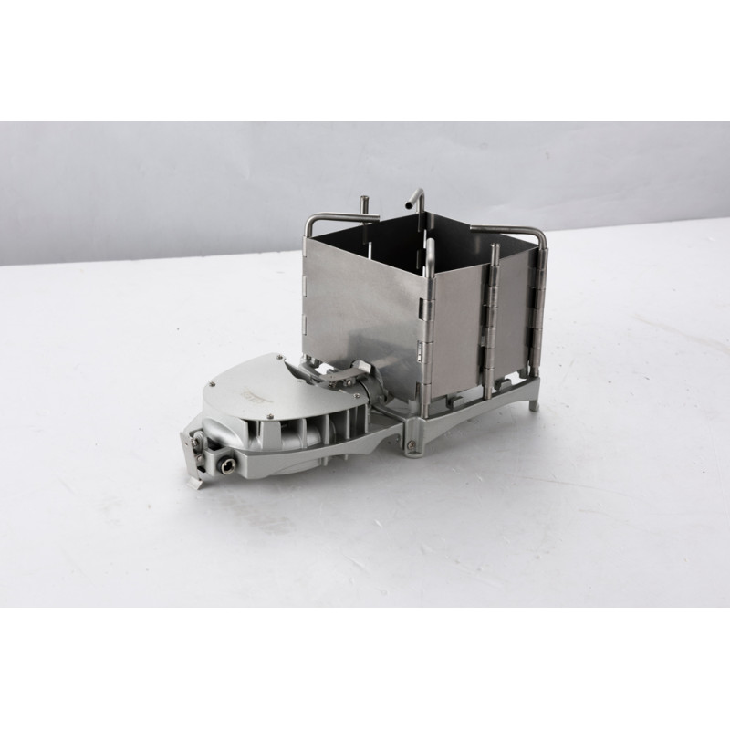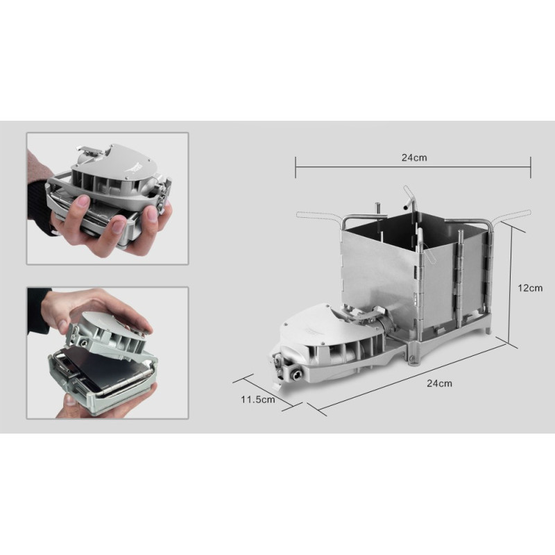 Нагрівач компактний та легкий. Його розміри становлять: довжина – 24 сантиметри, висота – 12 сантиметрів. Виготовлена піч-трісочниця з міцної сталі, вона стійка до дії жару, і захищена від іржі. У складеному вигляді пальник вміститься на долоні. Опорні стрижні повертаються відповідно до розміру котла. Конструкція витримує навантаження до двадцяти чотирьох кілограмів.