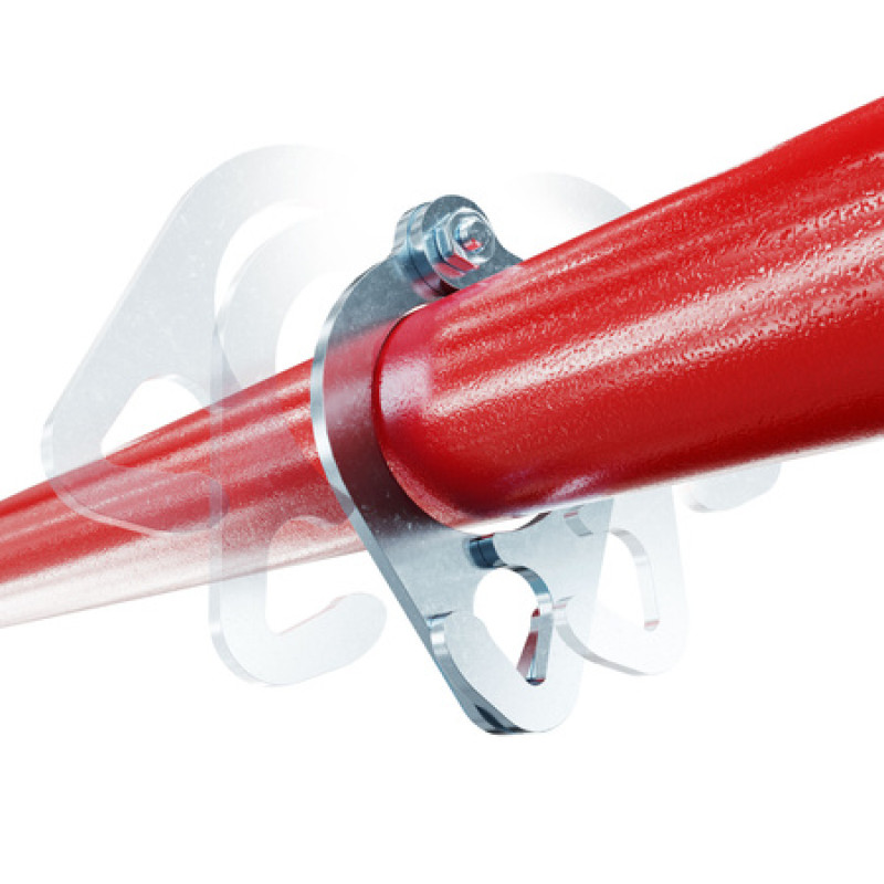 Притискний гак виготовлений з товстого листового металу і призначений для кріплення на трубку діаметром до 32 мм. Його структура розроблена таким чином, щоб під час навантаження притискати його до штанги, підвищуючи стабільність.