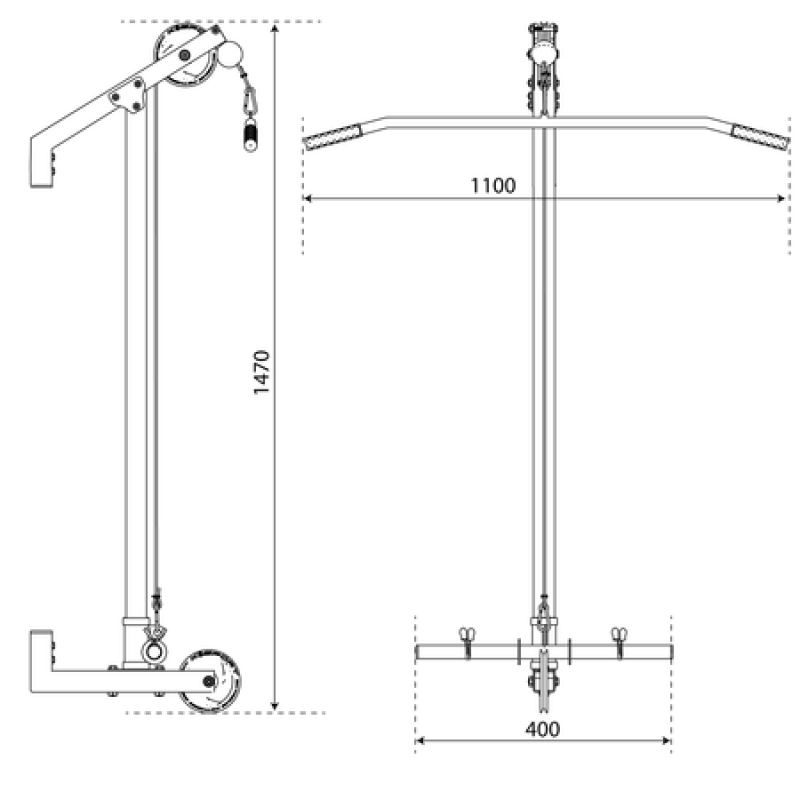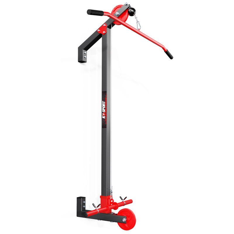 Використовувати цей універсальний тренажер можна різними способами. Верхній шків ідеально підійде для вправ, що залучають м’язи спини та рук, наприклад, підтягування штанги до грудей або шиї або випрямлення передпліч. У комплект входить штанга довжиною 110 см. Він має спеціально вигнуті кінці, які забезпечують комфортний хват без надмірного навантаження на зап'ястя. Гумові накладки на кінцях штанги не дають їй ковзати в руках. Якщо протягнути додатковий трос (входить в набір) через нижнє кільце шківа, ви зможете виконувати багато нових вправ у різних положеннях. Ви можете згинати передпліччя в положенні стоячи (тренування біцепсів), підтягувати штангу до підборіддя двома руками (тренування плечей) або гребти, сидячи на підлозі однією або обома руками (м’язи спини). Це лише кілька можливостей. Ваше навчання може бути справді тривалим! Якщо ви хочете ще більше і різноманітних вправ, ми рекомендуємо додаткові ручки, які доступні в окремих пропозиціях. Завдяки їм навчання на нашому обладнанні збагатиться багатьма новими елементами!