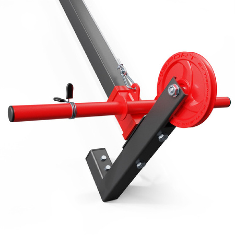 Підйомник оснащений пластиковими втулками, завдяки яким підйомник працює плавно - гарантія безпечних і комфортних занять. Залежно від інтенсивності вашого тренування ви можете використовувати різні ваги. Стрижень має загальну довжину 50 см (25 см з кожного боку). Це дає можливість сильно навантажувати пристрій або використовувати багато менших ваг, таким чином дуже точно підбираючи вагу для вправи. Універсальний діаметр (21,3 мм) дозволяє використовувати обважнювачі різних виробників.