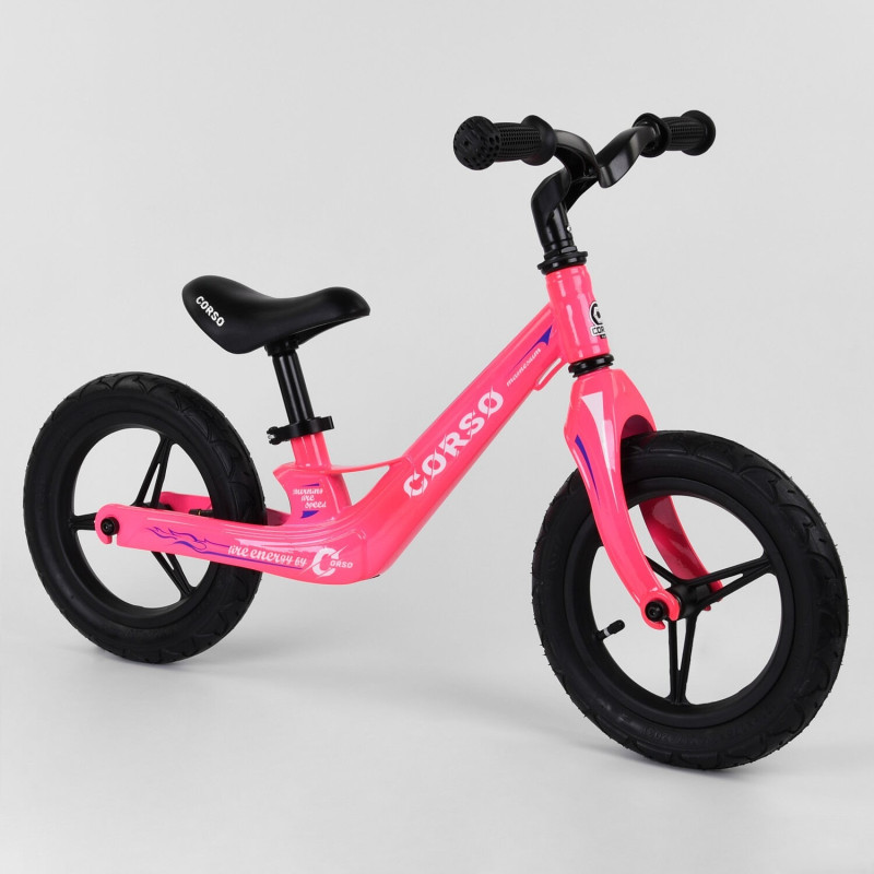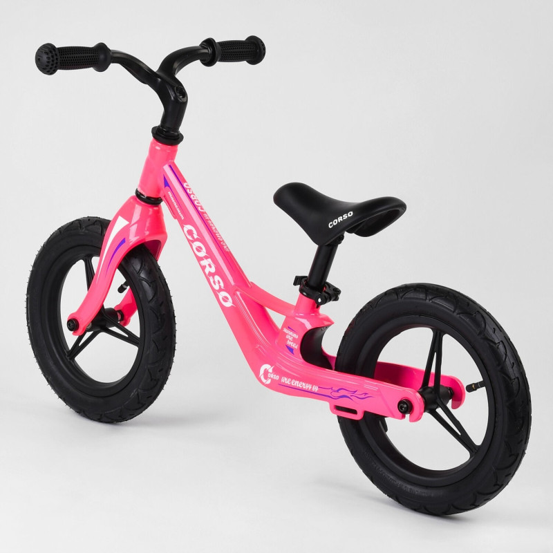 Ультралегкий велобег Corso изготовлен из магниевого сплава. Благодаря надежному корпусу родители могут не переживать о безопасности маленького гонщика. Надувные колеса размером 12 дюймов справятся даже с грунтовыми дорогами, сохраняя плавность хода. Колеса оснащены магниевыми дисками. Мягкое сидение эргономичной обтекаемой формы выполнено для максимального удобства при езде.Велобег подходит детям возрастом старше 2 лет.Особенности модели:• Изогнутый руль;• Магниевая вилка;• Магниевые диски;• Алюминиевая втулка;• Резиновые покрышки;• Герметизированные подшипники;• Ручки оснащены мягкими резиновыми грипсами;Характеристики:• Ширина руля - 38 см;• Регулировка седла: 31-44 см;• Регулировка руля 52-57 см;• Вес 2,2 кг;• Материал рамы - магний.Максимальный вес - 45 кг.