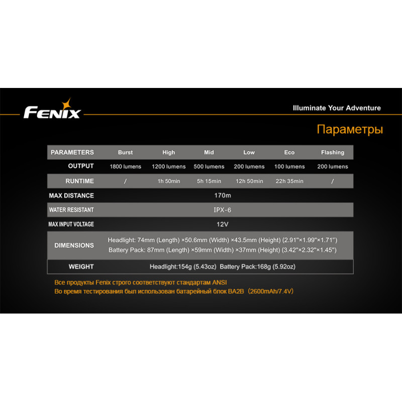 | Яскравість | 1800 люмен | 1200 люмен | 500 люмен | 200 люмен | 100 люмен | 200 люмен | ||||