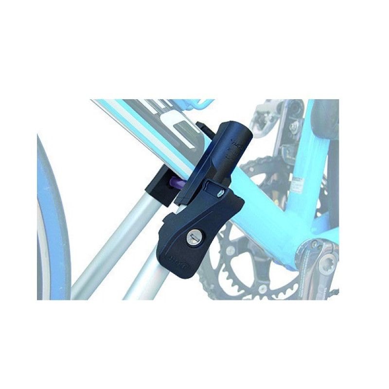 За допомогою універсального тримача ви легко і дуже швидко закріпите на рамі будь-який тип велосипеда. У той же час регульовані швидкознімні ремінці витримують шини будь-якої ширини. Тримач пропонує можливість блокування, тож вам не доведеться хвилюватися, що велосипед вкрадуть із припаркованого автомобіля. У комплект поставки входить монтажний набір для кріплення до сталевих і алюмінієвих стрижнів (в Т-подібний профіль).