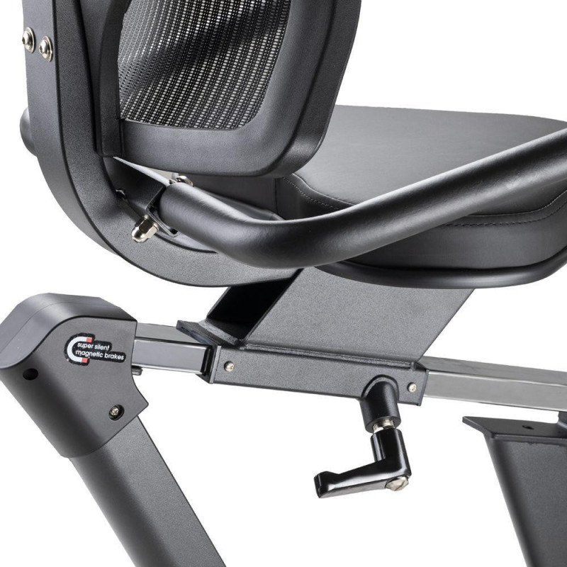 Сидіння має спеціально сконструйовану спинку та бічні ручки для зручного регулювання. В бічних ручках також розташовані пульсометри, які дозволяють вам контролювати своє серцеве ритм під час тренування. Дисплей відображає важливу інформацію, таку як час, відстань, швидкість, калорії, загальна відстань та частота серцевих скорочень.