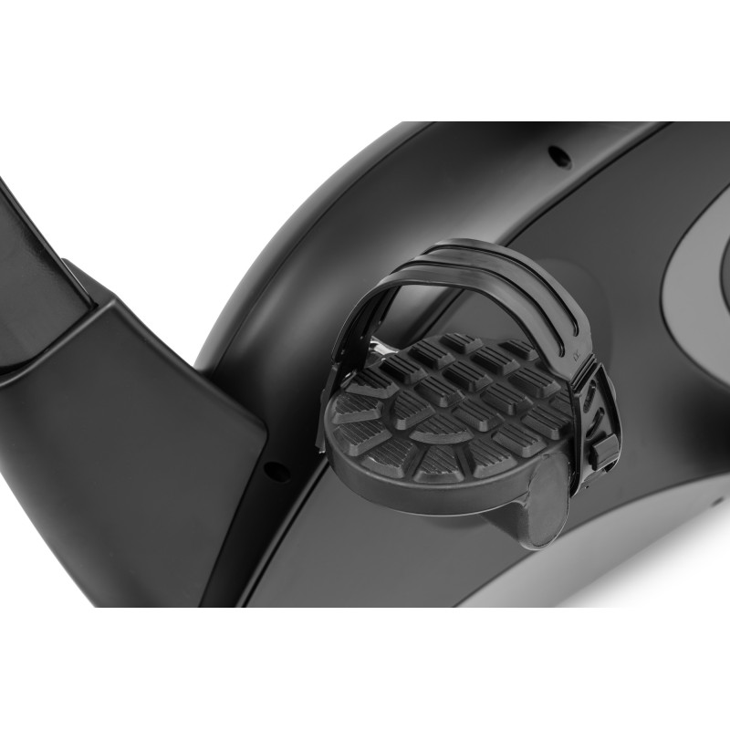 Кроме того, велосипед оснащен нескользящими педалями с фиксирующими ремнями, удерживающими ногу на месте, выравнивающие ножки, обеспечивают устойчивость во время тренировок.