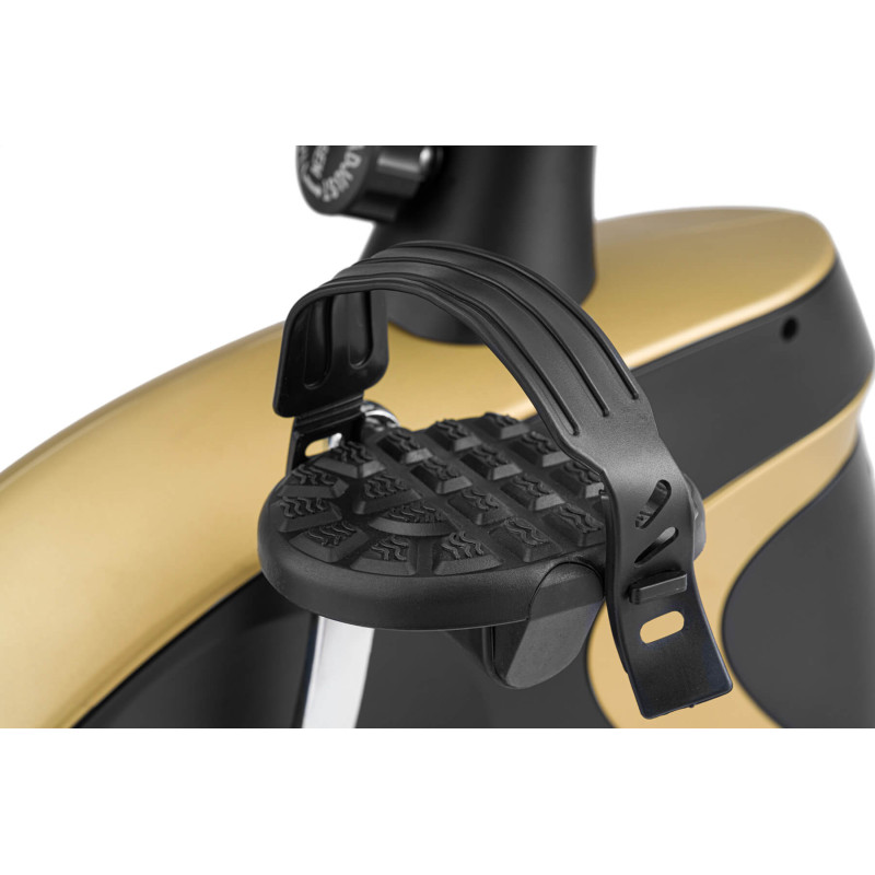 Кроме того, велосипед оснащен нескользящими педалями с фиксирующими ремнями, удерживающими ногу на месте, выравнивающие ножки, обеспечивают устойчивость во время тренировок.