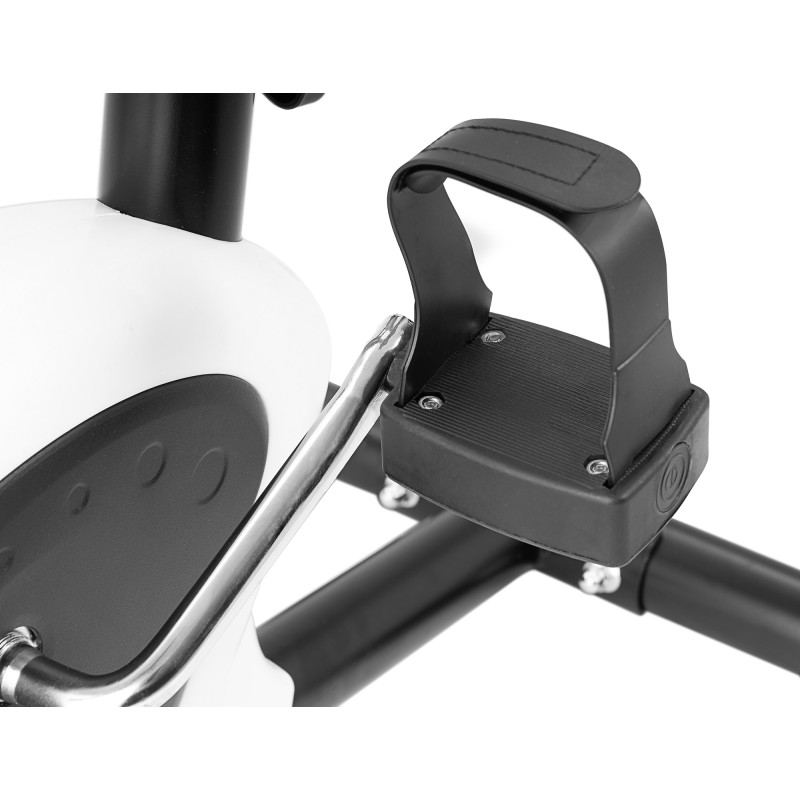 Несмотря на небольшие габариты, конструкция тренажера из армированной стали очень устойчива и надежна. Нескользящие педали с фиксирующими ремешками гарантируют безопасность во время каждой тренировки, а пластиковые накладки на ножках защитят пол от царапин. Вы сможете комфортно подстроить тренажер под Ваш рост, ведь высота сиденья регулируется.