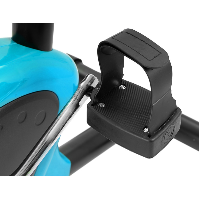 Несмотря на небольшие габариты, конструкция тренажера из армированной стали очень устойчива и надежна. Нескользящие педали с фиксирующими ремешками гарантируют безопасность во время каждой тренировки, а пластиковые накладки на ножках защитят пол от царапин. Вы сможете комфортно подстроить тренажер под Ваш рост, ведь высота сиденья регулируется.