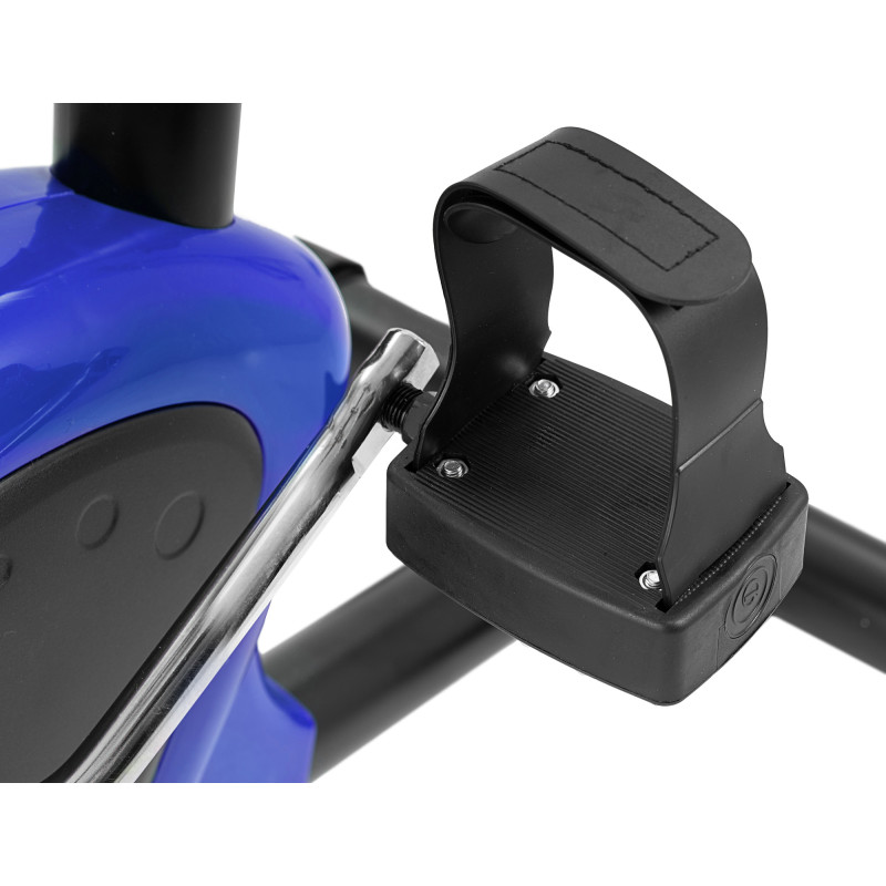 Несмотря на небольшие габариты, конструкция тренажера из армированной стали очень устойчива и надежна. Нескользящие педали с фиксирующими ремешками гарантируют безопасность во время каждой тренировки, а пластиковые накладки на ножках защитят пол от царапин. Вы сможете комфортно подстроить тренажер под Ваш рост, ведь высота сиденья регулируется.
