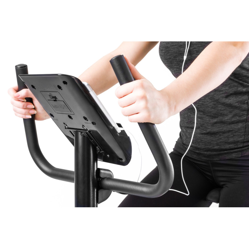 Армированная стальная конструкция и нескользящие педали с фиксирующими ремешками гарантируют безопасность во время каждой тренировки. Удобное мягкое сиденье регулируется по вертикальной и горизонтальной осям, поэтому Вы сможете максимально комфортно подстроить параметры тренажера под свои нужды. Благодаря компактным размерам велосипеда, его можно поставить в любом удобном для Вас месте и тренироваться без помех.