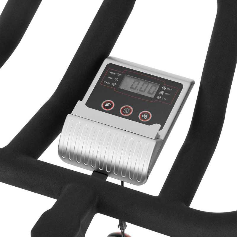 Стаціонарний велотренажер Gymrex ідеально підходить для використання вдома, а також у фітнес-клубах, готелях або SPA. Велосипед легко регулюється під ваш зріст. Висота керма (94 см - 104 см) і сидіння (84 см - 105 см) регулюються. Сідло дуже зручне. Збалансовані педалі з ременями для ніг і оптимальна маса маховика 20 кг забезпечують плавну їзду. Велотренажер має панель з РК-дисплеєм, на якому чітко читається час тренування, поточна швидкість, пройдена відстань, загальна кількість пройдених кілометрів і витрачені калорії. Завдяки функції сканування всі ці параметри можуть автоматично відображатися. Спінінг байк оснащений тримачем для телефону та планшета. Крім того, завдяки транспортним колесам велотренажер зручно переміщати. Конструкція виготовлена з міцної сталі з порошковим покриттям, що означає, що велотренажер витримує навантаження до 120 кг.