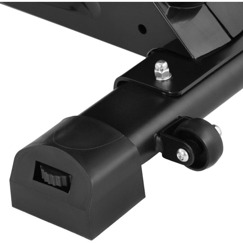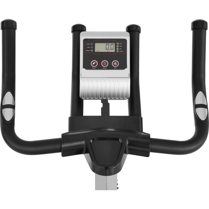Велотренажер має панель з рідкокристалічним дисплеєм, на якому можна чітко прочитати час тренування, поточну швидкість, пройдену відстань, загальну кількість пройдених кілометрів і спалені калорії. Завдяки функції сканування всі ці параметри можуть автоматично відображатися. Еліптичний велосипед має транспортувальні колеса, тому ви можете легко відкласти його після тренування.