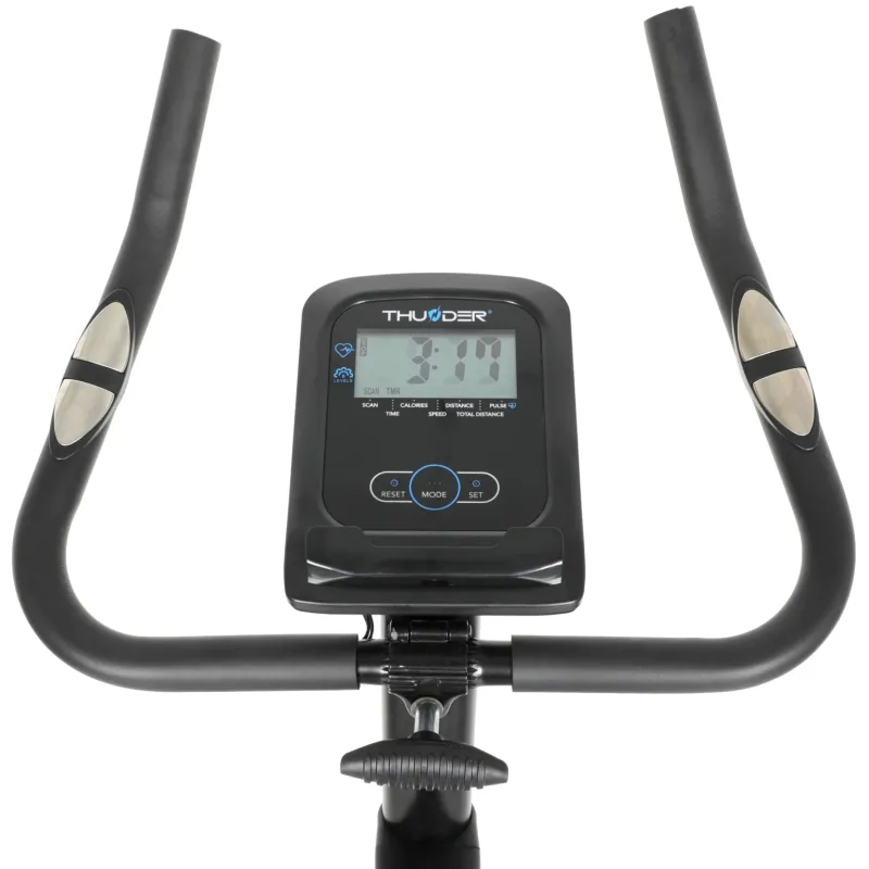 Велотренажер вертикальний MICRUS від THUNDER® - це чудовий спосіб покращити вашу фізичну форму - поєднайте комфорт із ефективністю, пристосуйте тренування до ваших індивідуальних потреб. Він оснащений електронним дисплеєм та забезпечує повний контроль над кожним аспектом тренування. Такі параметри, як час, швидкість, відстань, спалені калорії та частота серцевих скорочень, дозволяють точно контролювати ваш прогрес. Вимірювання пульсу дозволяє регулювати інтенсивність вправ, що допомагає ефективно спалювати калорії та досягати кращих результатів за більш короткий час.