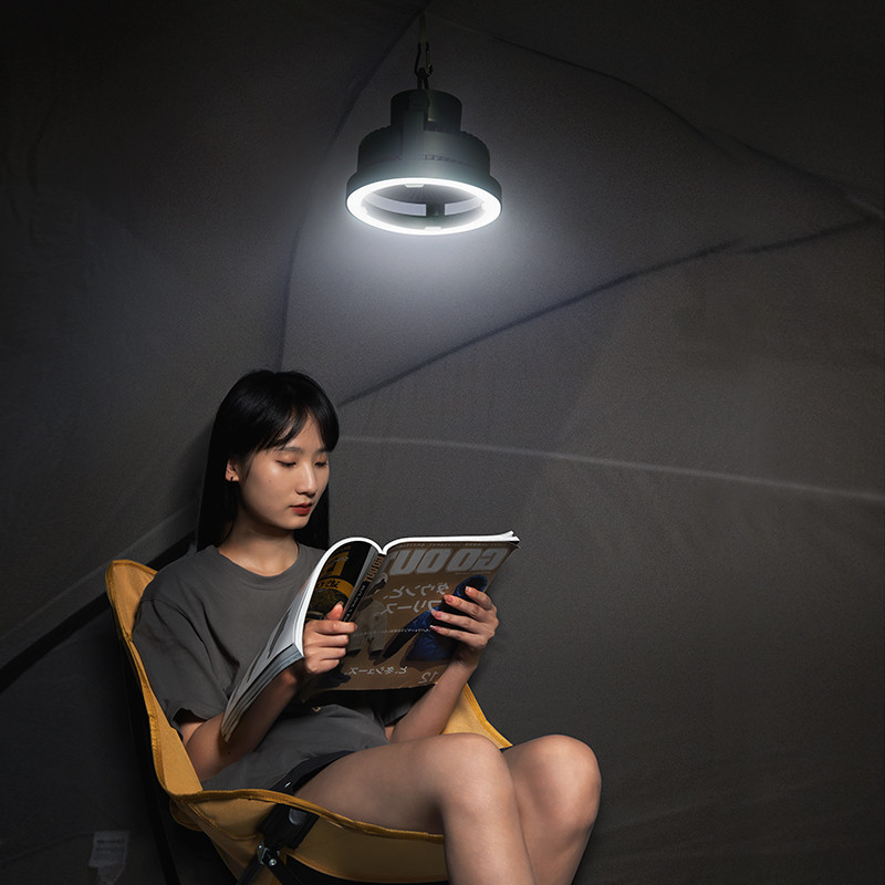 Універсальна, портативна 2 в 1 лампа-вентилятор. Може використовуватись, як на природі (дача, кемпінг, глемпінг, рибалка), так і вдома, в офісі на столі, або як підвісна лампа. Конструкція дозволяє обертати її на 180°, щоб обрати оптимальний кут подачі повітря. Вдень — охолоджує, вночі — світить!