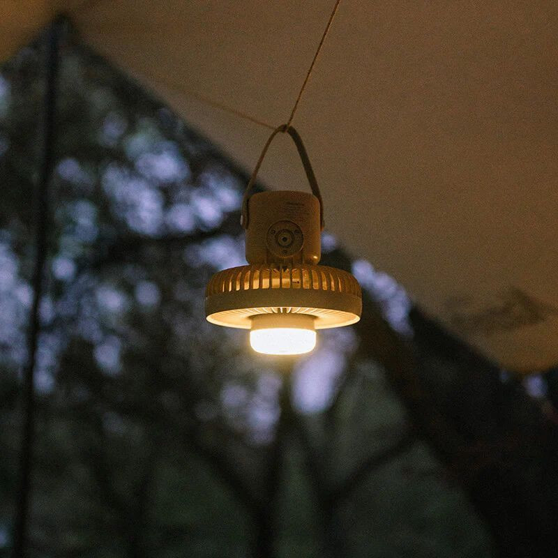 Вентилятор для кемпінгу включає вентилятор великої ємності, лампу 68 лм, підставку для штатива, зйомну батарею на 8000 мАг.