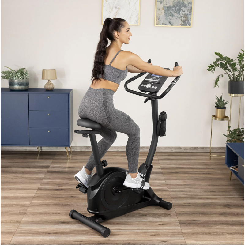 Из них - программы HRC (Heart Rate Control), контролирующие частоту сердечных сокращений. Компьютер, измеряя пульс человека, автоматически подстраивает скорость во время тренировок. Программа Watt - это функция, позволяющая проверить и определить состояние сердцебиения, нагрузку на организм и уровень подготовки пользователя. Комфорт тренировок на дому обеспечит анатомическое сиденье с возможностью вертикальной и горизонтальной регулировки. Устойчивость велосипеда обеспечивают регулируемые ножки, а транспортировочные ролики позволяют удобно перемещать тренажер в помещении.