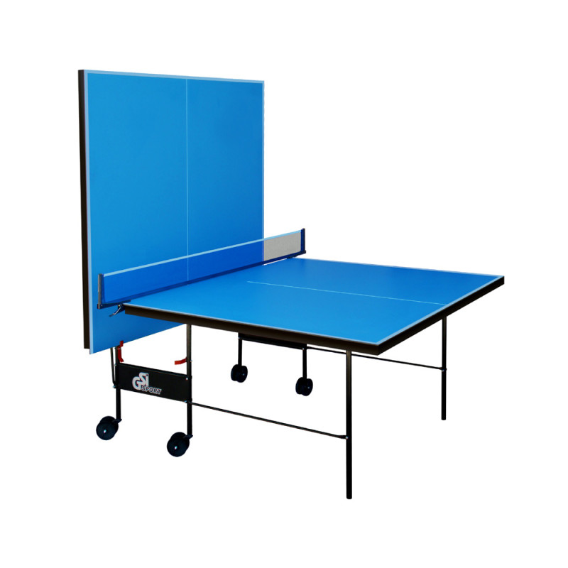 Всепогодный теннисный стол. В качестве материала для игровой поверхности используется алюминиевая композитная панель синего цвета толщиной 4 мм. Этот материал устойчив к жаре и холоду, а также влаге. Игровая поверхность оснащена жестким металлическим каркасом (профиль 30*20 мм). Теннисный стол базируется на удобной тележке, изготовленной из металлического трубчатого профиля диаметром 25 мм с полиэфирным покрытием. Конструкция стола позволяет тренироваться в одиночку. Стол легко перемещается на 4-х сдвоенных колесах диаметром 107 мм, 2 колеса маневренные.