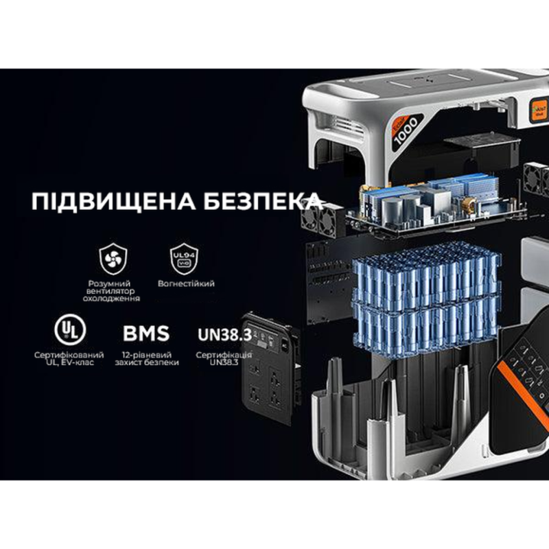 Вентилятори відрізняються практично безшумною роботою, тому станцію можна використовувати навіть уночі, не переймаючись за комфорт сну. Діапазон робочих температур акумулятора коливається від -10°C до 45°C, гарантуючи стабільну роботу в різних умовах.