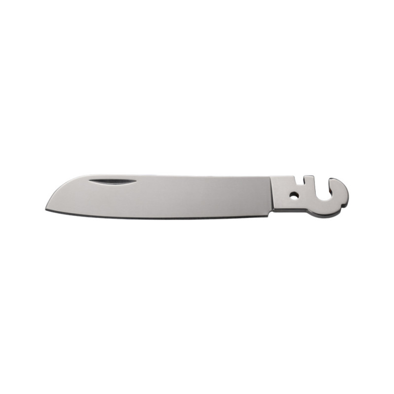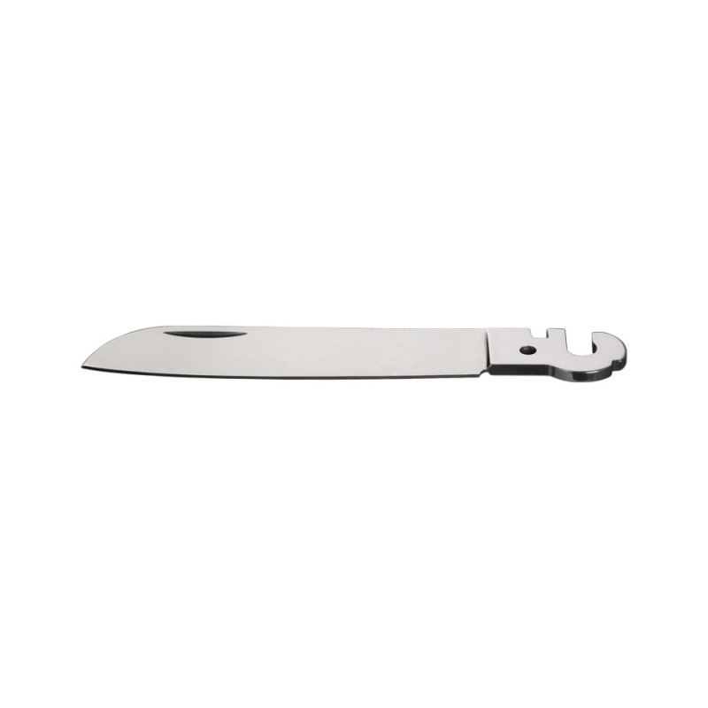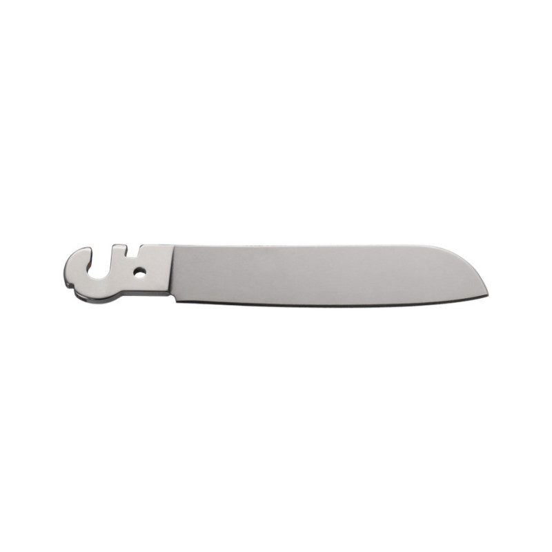 Клинок має профіль Sheepsfoot з характерним зниженням обуха по дузі у напрямку різальної кромки. Відсутність яскраво вираженого вістря підвищує безпеку експлуатації виробу: воно легко справляється з різанням харчових продуктів, волосіні, мотузок, мінімізуючи можливість випадково поранитися об кінчик при необережному русі.