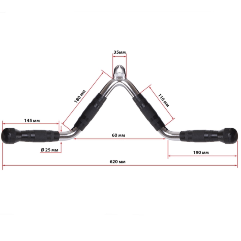 Ручка для тяги York Fitness V-подібна багатофункціональна з гумовими рукоятками, хром