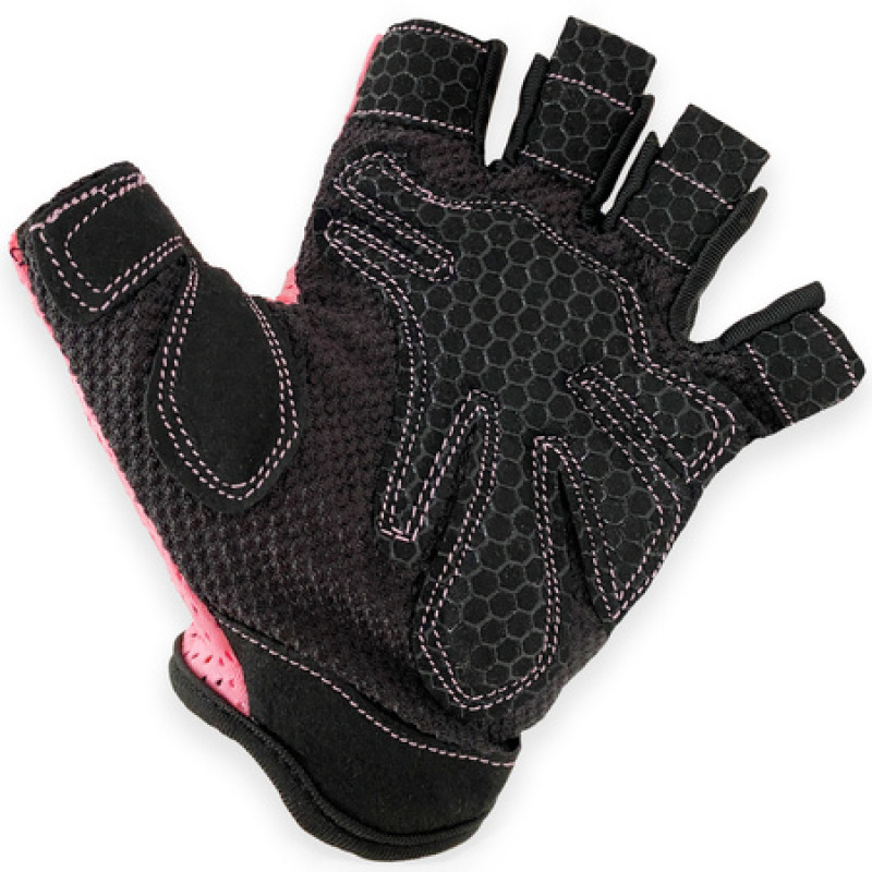 На зап'ясті є застібка Velcro для зручного надягання та зняття рукавичок. Відкриті пальці забезпечують надійний хват. Модель виконана в привабливих чорно-рожевих кольорах.