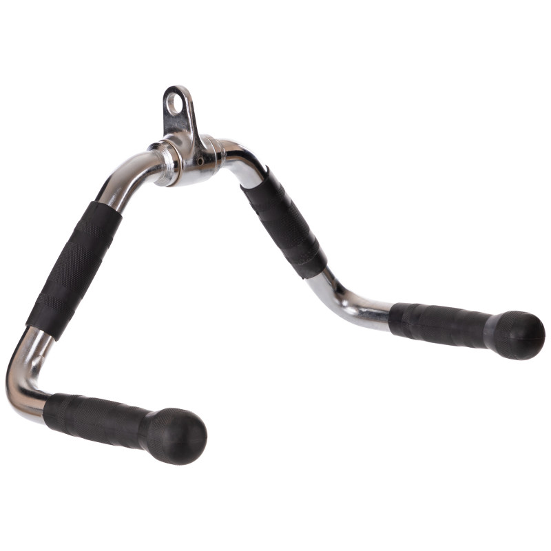Аксесуар виготовлений із високоякісної сталі, підданої хромуванню для захисту від корозії. Має вкриті поліуретановими накладками області захватів, що запобігає зісковзанню рук і дозволяє спортсмену надійно утримувати рукоятку навіть при роботі з важкими вагами. Завдяки підвісу, що обертається, трос не перегинається, і спортсмен контролює траєкторію свого руху під час виконання вправ.