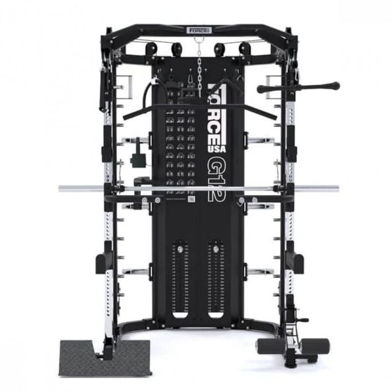Force USA G12 — найбільш продавана модель бренду, яка стала стандартом для комплексних станцій професійного рівня. Вона дозволяє тренувати силу, гіпертрофію, вибухову потужність та витривалість, охоплюючи всі основні рухові патерни.