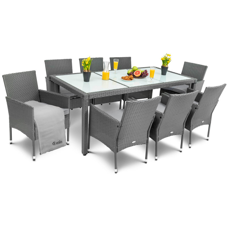 Любите веселі посиденьки з друзями або ж затишні вечори в сімейному колі? Що б ви не вибрали, садові меблі Di Volio VERONA стануть ідеальною прикрасою вашого саду. Елегантний дизайн, приємний колір, майстерне плетіння з ротанга - на мить ви перенесетеся в затишний дворик італійської Верони. Відчути дух культового міста просто - потрібно купити набір "Садові меблі Di Volio VERONA з ротанга" від італійського бренду Di Volio. Di Volio - це відмінна гарантія якості та справедливої ціни на всю її продукцію. Збираючись замовити меблі від Di Volio, шукайте тільки перевірені сайти. У набір меблів Di Volio VERONA входять елегантні крісла універсального кольору, великий стіл зі скляною стільницею, м'які подушки, кріпильні елементи та спеціальний захисний чохол.