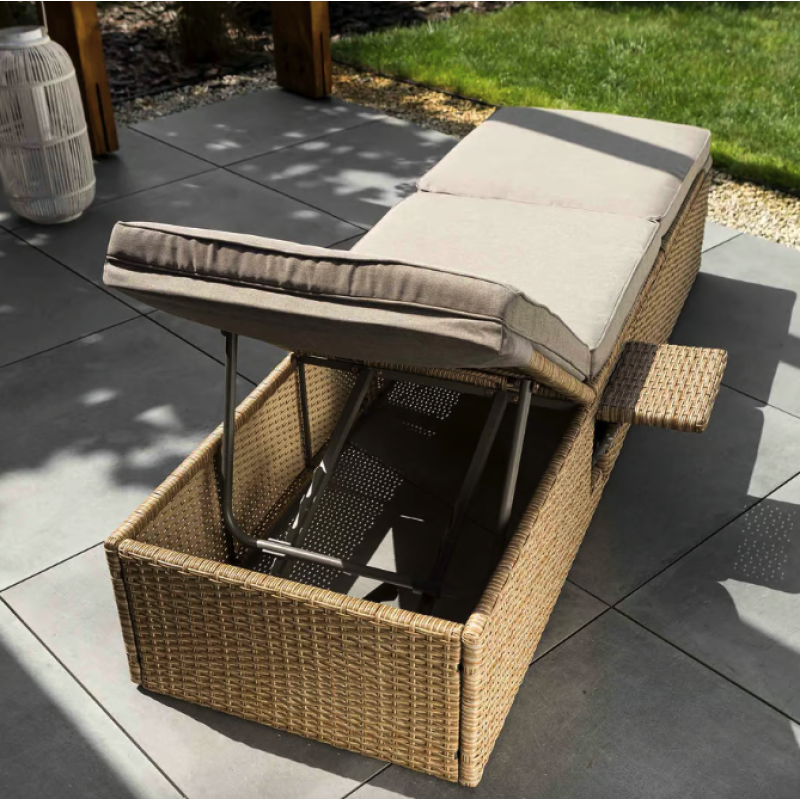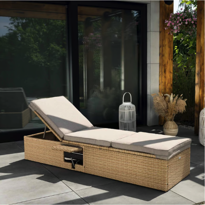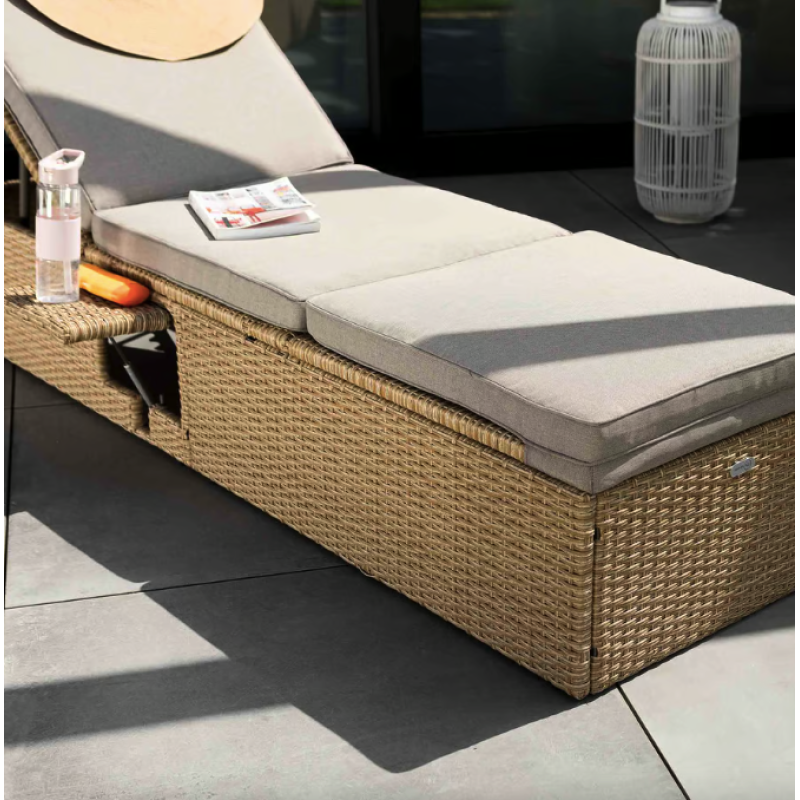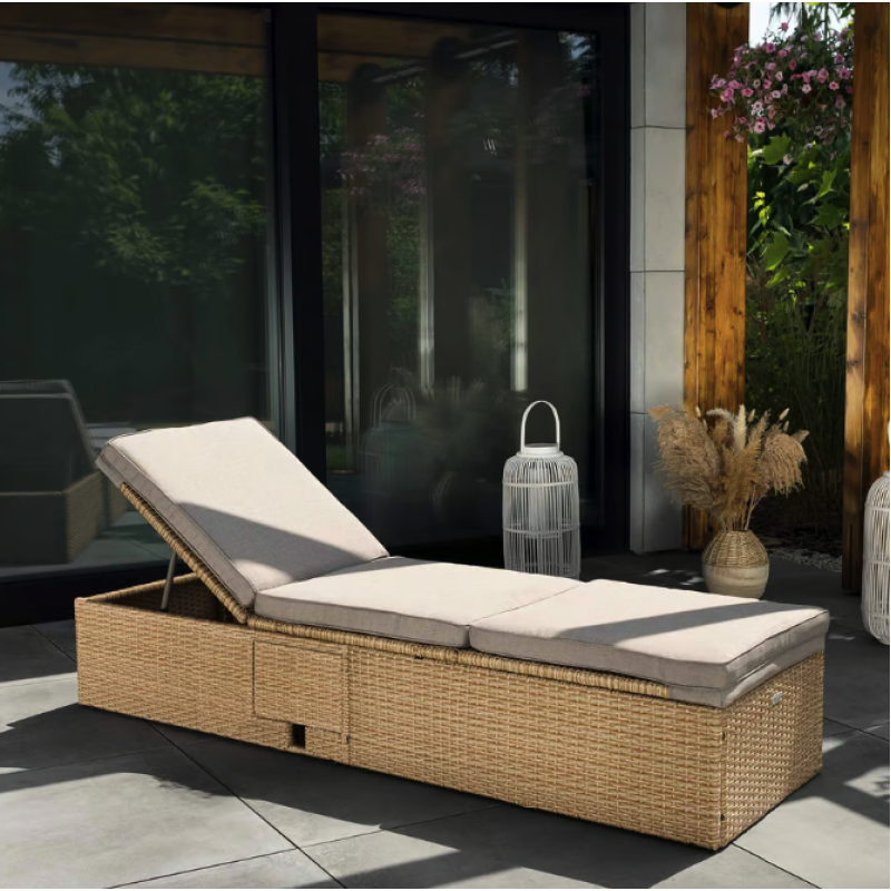 Шукаєте шезлонг, який поєднує стильний вигляд, комфорт і довговічність? Asco - саме те, що вам потрібно! Його сучасний дизайн, міцна конструкція та можливість регулювання положення гарантують повний релакс у вашому саду чи на терасі. Садовий шезлонг Asco від Di Volio - це елегантний і зручний предмет меблів, який поєднує в собі сучасний дизайн, виняткову функціональність і комфорт використання. Лежак із міцної сталі та обплетення техноротангу бежевого кольору характеризується естетичним, природним виглядом, а також високою міцністю та стійкістю до мінливих погодних умов. Для забезпечення максимального комфорту під час відпочинку цей шезлонг оснащений м'якою подушкою та практичним механізмом, що дозволяє змінювати кут нахилу спинки та підніжки . Регульований шезлонг Asco ідеально підходить для обладнання саду або тераси, забезпечуючи місце для відпочинку на відкритому повітрі.
