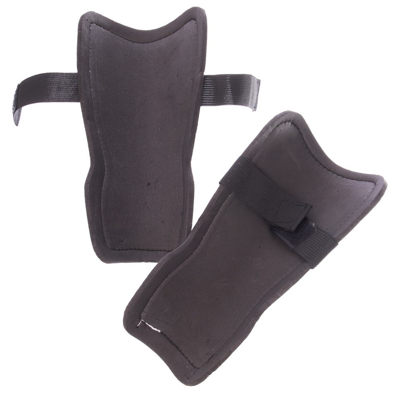 Зовнішня частина щитків виготовлена із міцного пластику. Внутрішній бік - з етиленвінілацетату. М'який, пінистий матеріал амортизує удари та робить використання захисних аксесуарів більш комфортним.