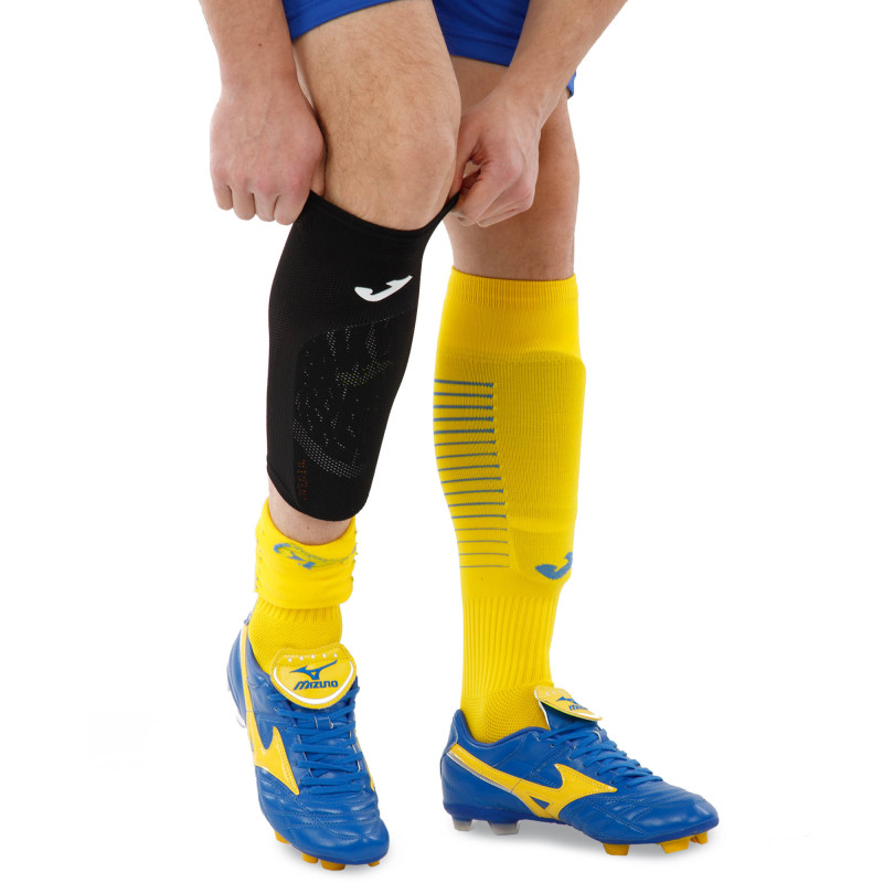 Для фіксації щитків на тілі передбачено спеціальний рукав з дихаючого матеріалу. Він щільно облягає ногу, надійно утримуючи щитки у правильному положенні. Поверх рукава можна одягати футбольні гетри.