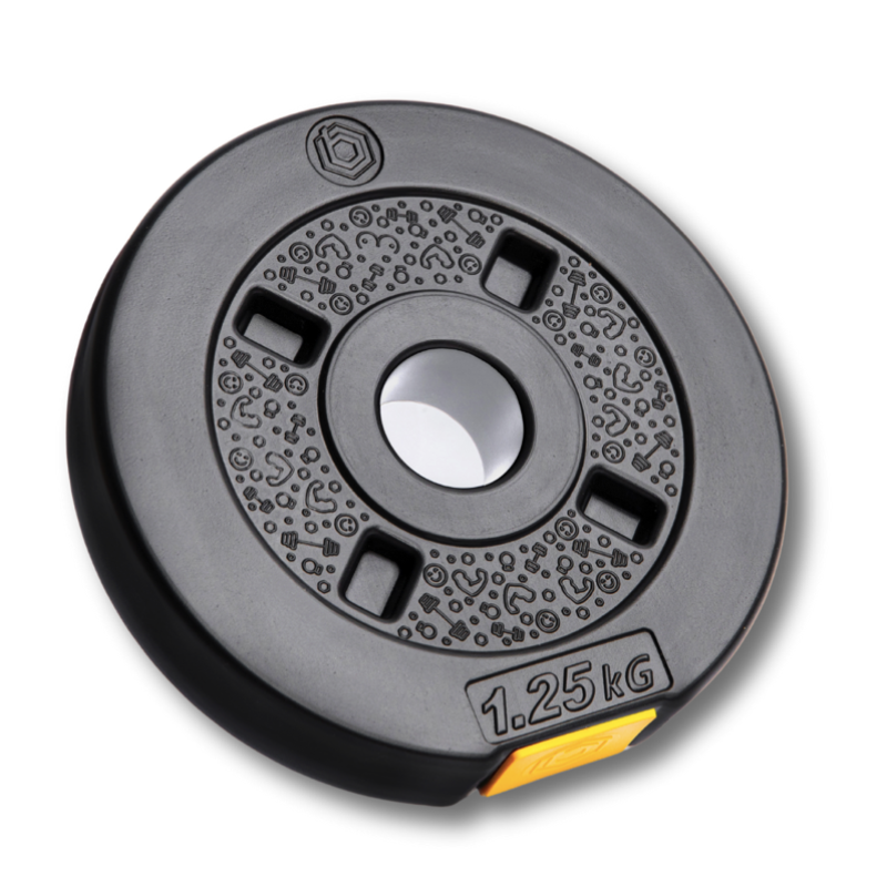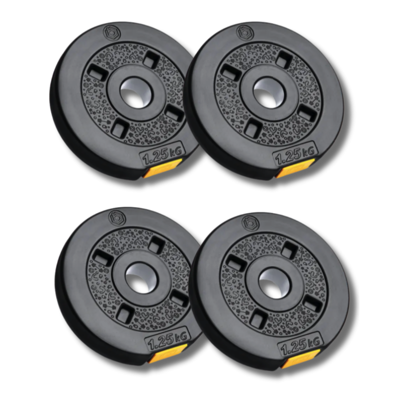 Сет композитних дисків Besport PowerPro 5 (4×1,25кг) - чудове рішення для поступового нарощування навантаження та вдосконалення техніки. Вага 1,25кг дозволяє виконувати контрольовані підходи під час розминки, навчальних тренувань чи відновлення. Виготовлені з міцного композитного ABS-пластику, диски вирізняються зносостійкістю, витривалістю до пошкоджень і температурних коливань. Стандартний діаметр отвору 31 мм забезпечує сумісність із більшістю грифів для гантелей і штанг. Набір підходить для домашнього спортзалу, де важлива точність, якість і безпека.