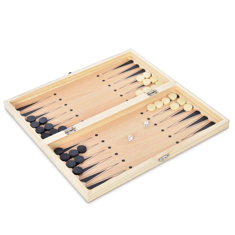 Класичний набір настільних ігор, що поєднує три легендарні інтелектуальні ігри: шахи, шашки і нарди. Підійде для любителів стратегічних ігор, які бажають провести час з друзями чи сім'єю у захоплюючій та розвиваючій атмосфері.