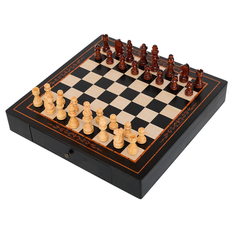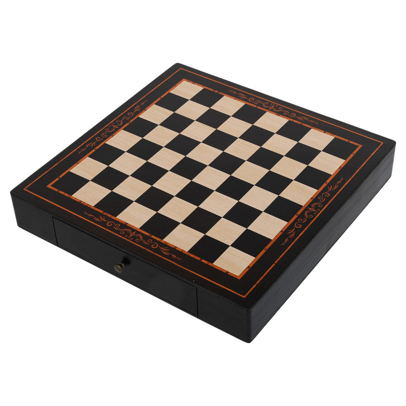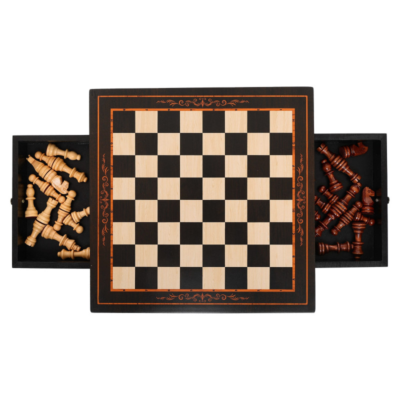 Корпус оснащений висувними ящиками для акуратного зберігання фігур, а також дозволяє підвісити дошку вертикально, перетворюючи її на декоративний елемент.