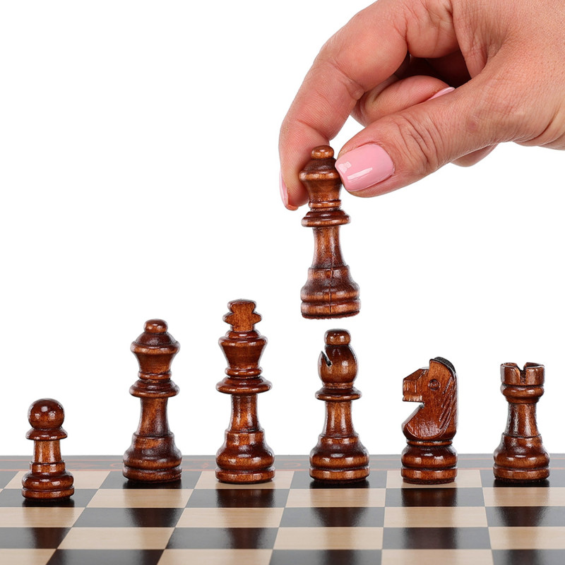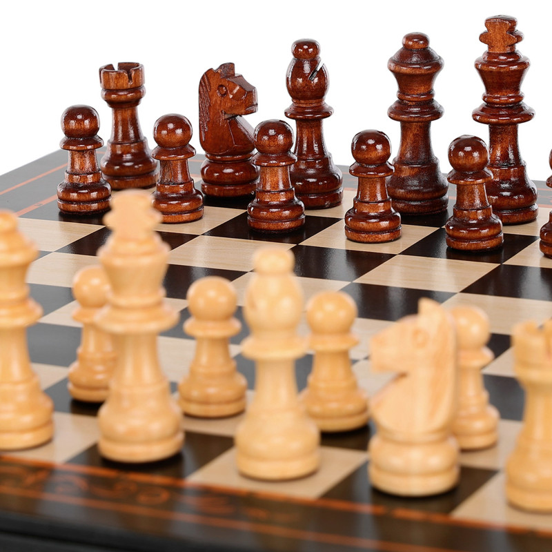 Дерев'яні магнітні шахи – це стильний та практичний набір, що поєднує класичний дизайн та зручність зберігання. Ігрове поле виконане в елегантному оформленні, а фігурки виготовлені з дерева у двох кольорах – світлому та темному. Завдяки вбудованим магнітам фігури надійно фіксуються на полі, що робить гру комфортною вдома, у дорозі чи на природі.