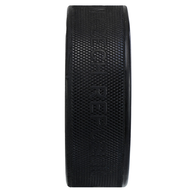 Матеріал шайби – високоякісна вулканізована гума. Виріб має підвищену міцність і зносостійкість, шайбу практично неможливо деформувати. Розмір виробу виконаний за стандартом і становить 7.6 см у діаметрі та 2.5 см у висоту, вага – 165 г. Бічна поверхня шайби має текстуровані насічки з логотипом виробника. Фактурне покриття має гарне зчеплення з поверхнею ключки.