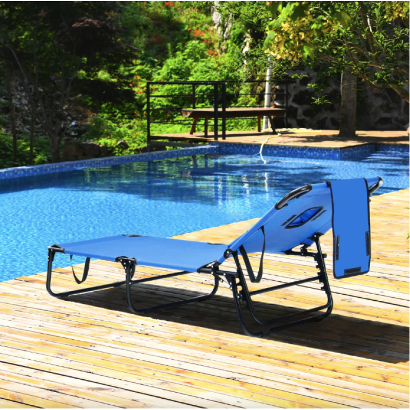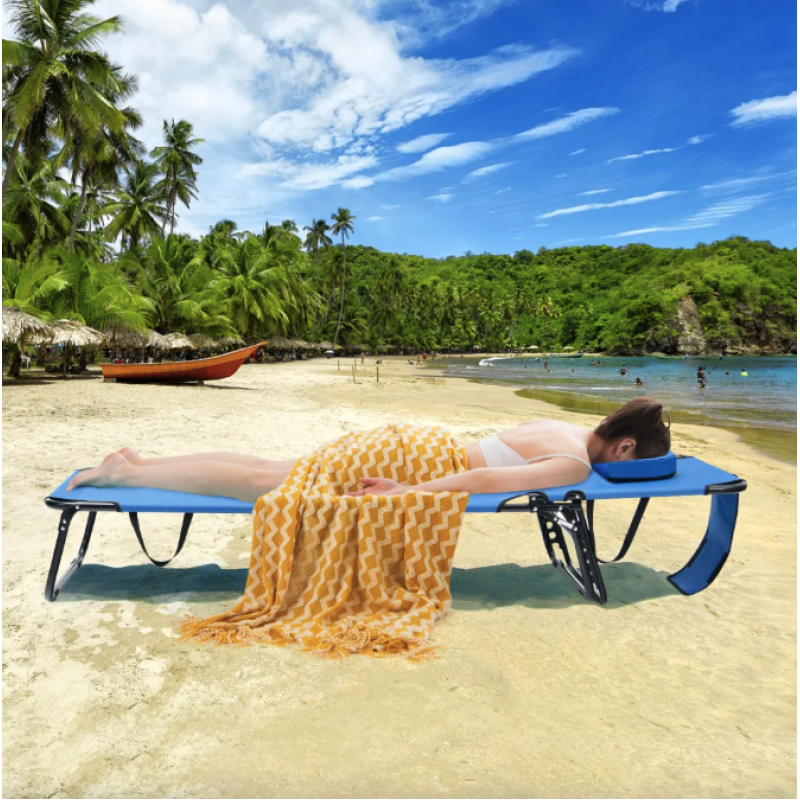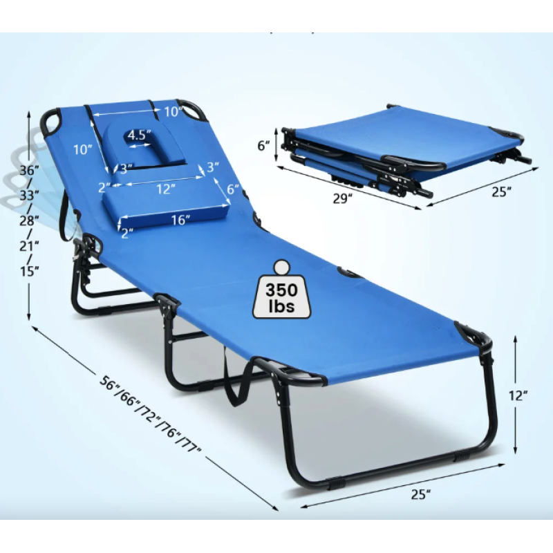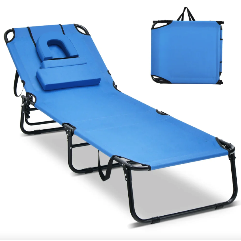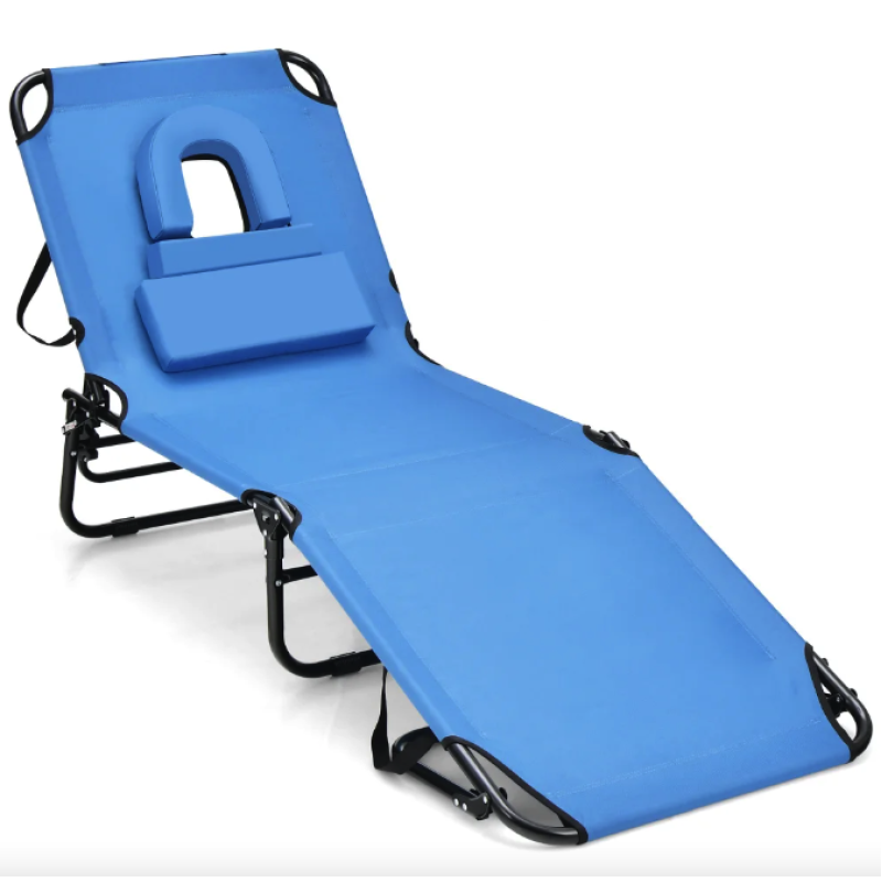 Шезлонг Costway Hanna розкладний з отвором для обличчя блакитний