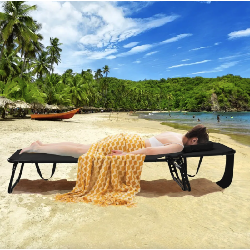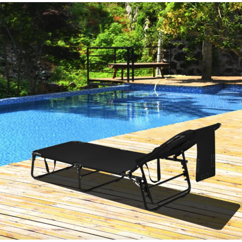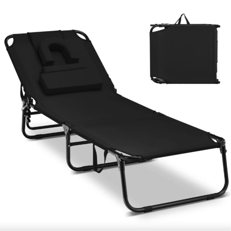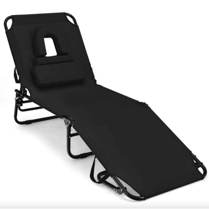 Шезлонг Costway Hanna розкладний з отвором для обличчя чорний