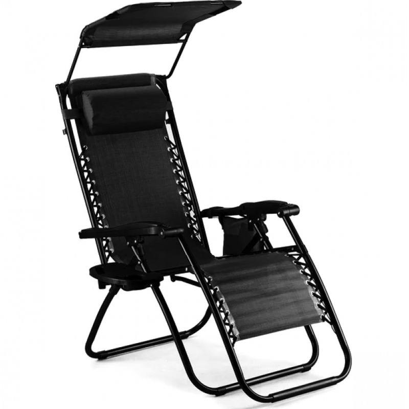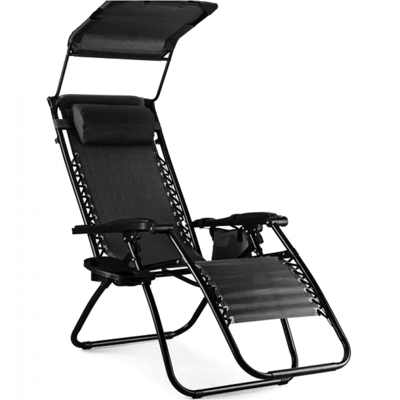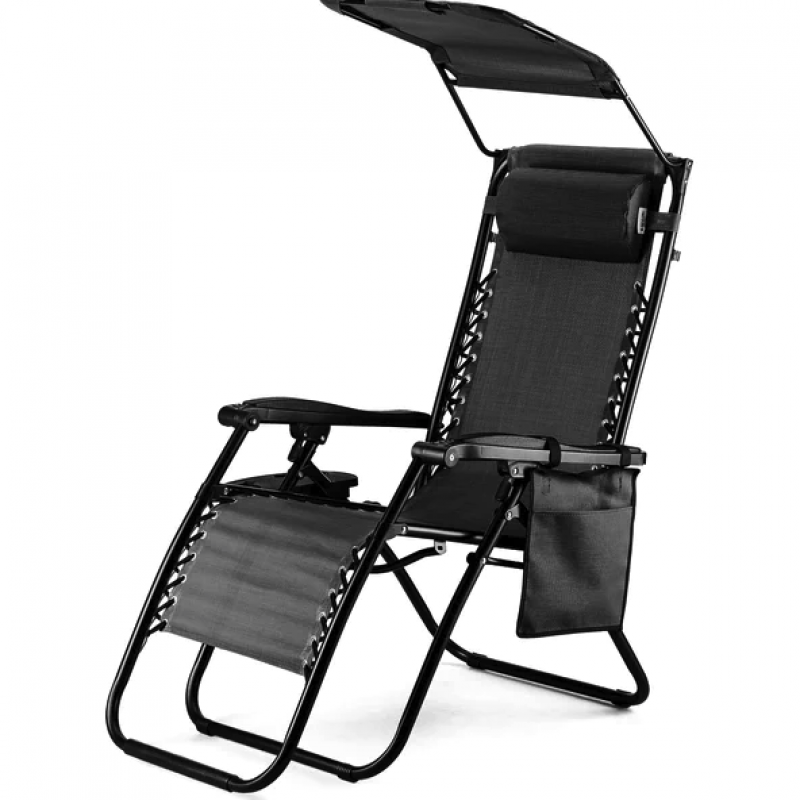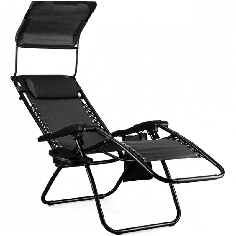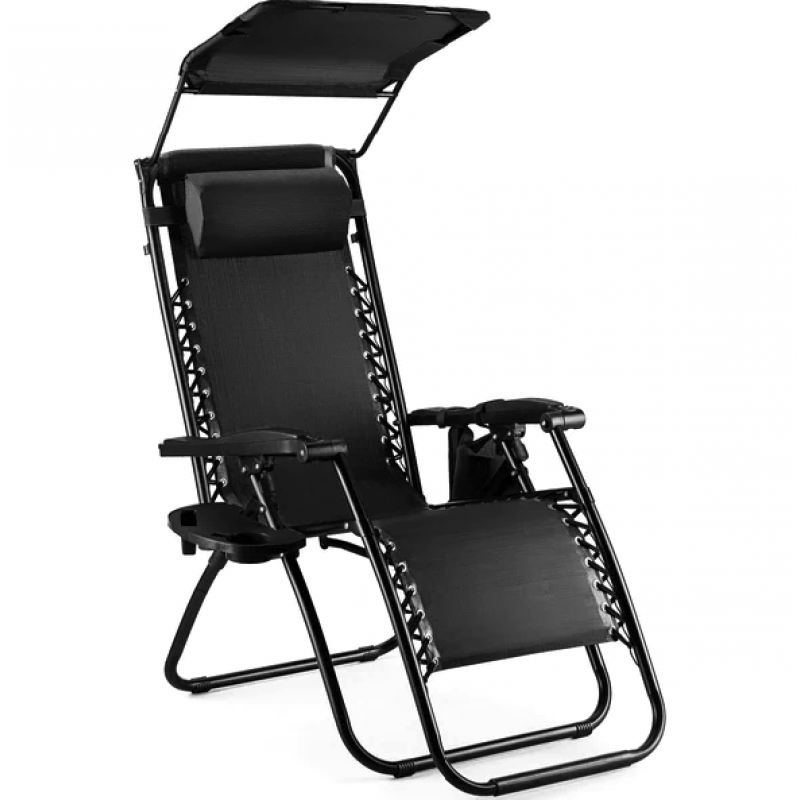 Шезлонг лежак Outtec Zero Graviti Sun розкладний з дашком чорний