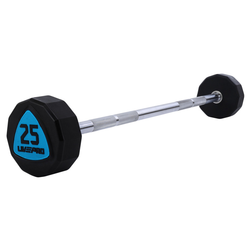 Штанга нерозбірна з фіксованою вагою пряма поліуретанова дванадцятигранна LiveUp LP8012-25 довжина-89,2см 25кг чорний-синій