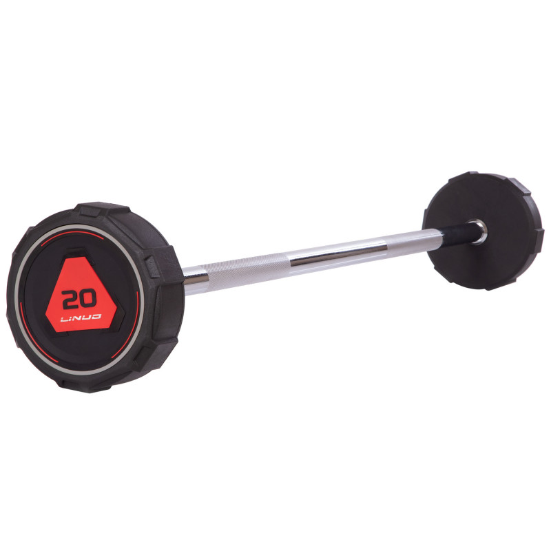 Штанга нерозбірна з фіксованою вагою пряма поліуретанова LI NUO TA-3622-20 довжина-113см 20кг чорний-червоний