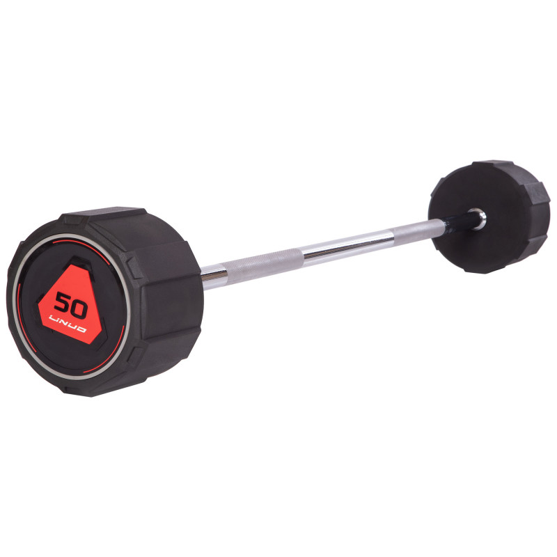 Штанга нерозбірна з фіксованою вагою пряма поліуретанова LI NUO TA-3622-50 довжина-122см 50кг чорний-червоний