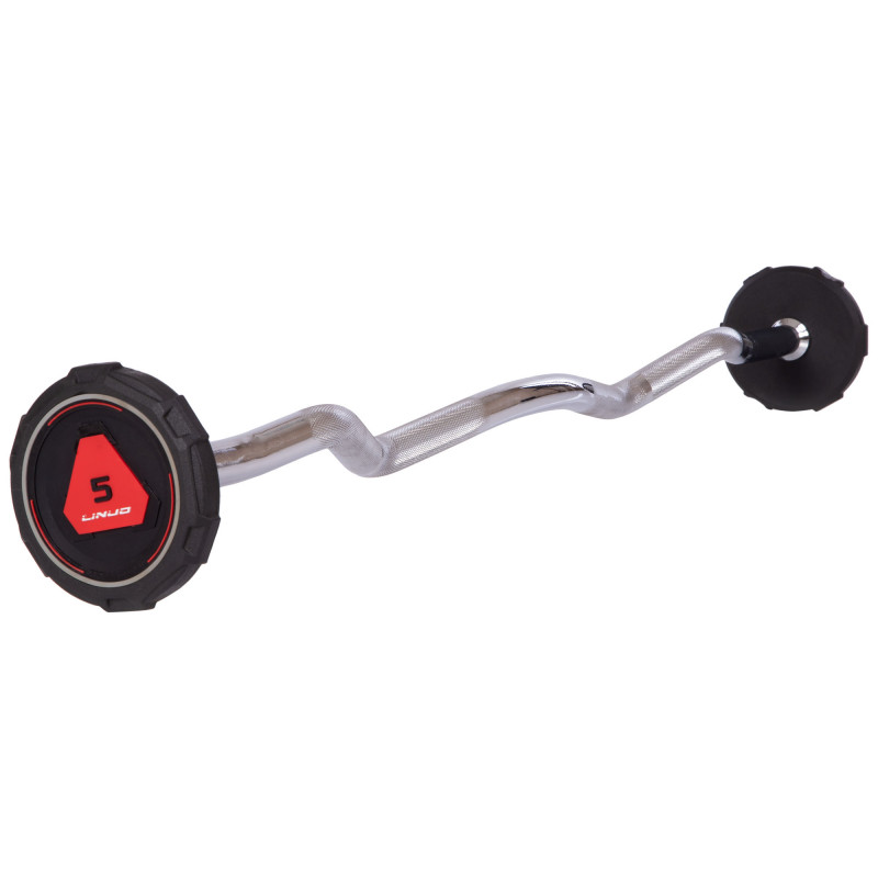 Штанга нерозбірна з фіксованою вагою вигнута поліуретанова LI NUO TA-3622-5 довжина-106см 5кг чорний-червоний