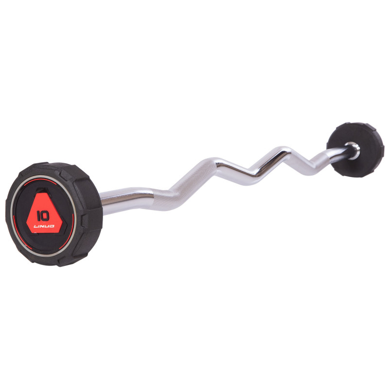 Штанга нерозбірна з фіксованою вагою вигнута поліуретанова LI NUO TA-3623-10 довжина-109см 10кг чорний-червоний