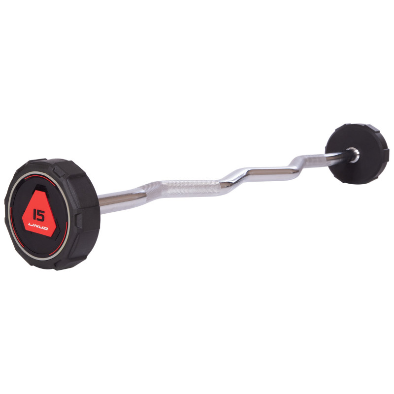 Штанга нерозбірна з фіксованою вагою вигнута поліуретанова LI NUO TA-3623-15 довжина-111см 15кг чорний-червоний