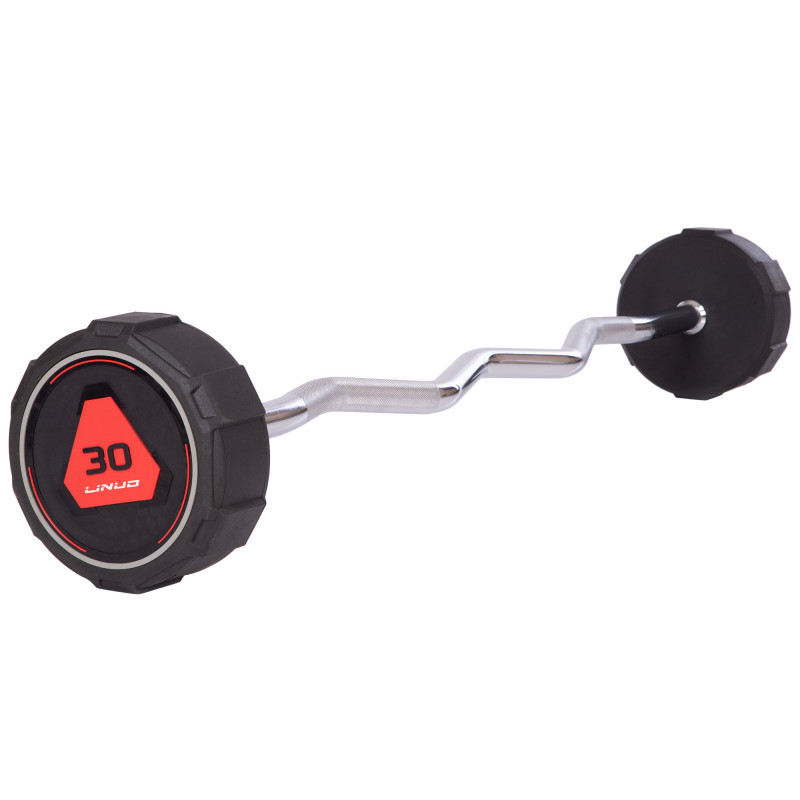 Штанга нерозбірна з фіксованою вагою вигнута поліуретанова LI NUO TA-3623-30 довжина-116см 30кг чорний-червоний